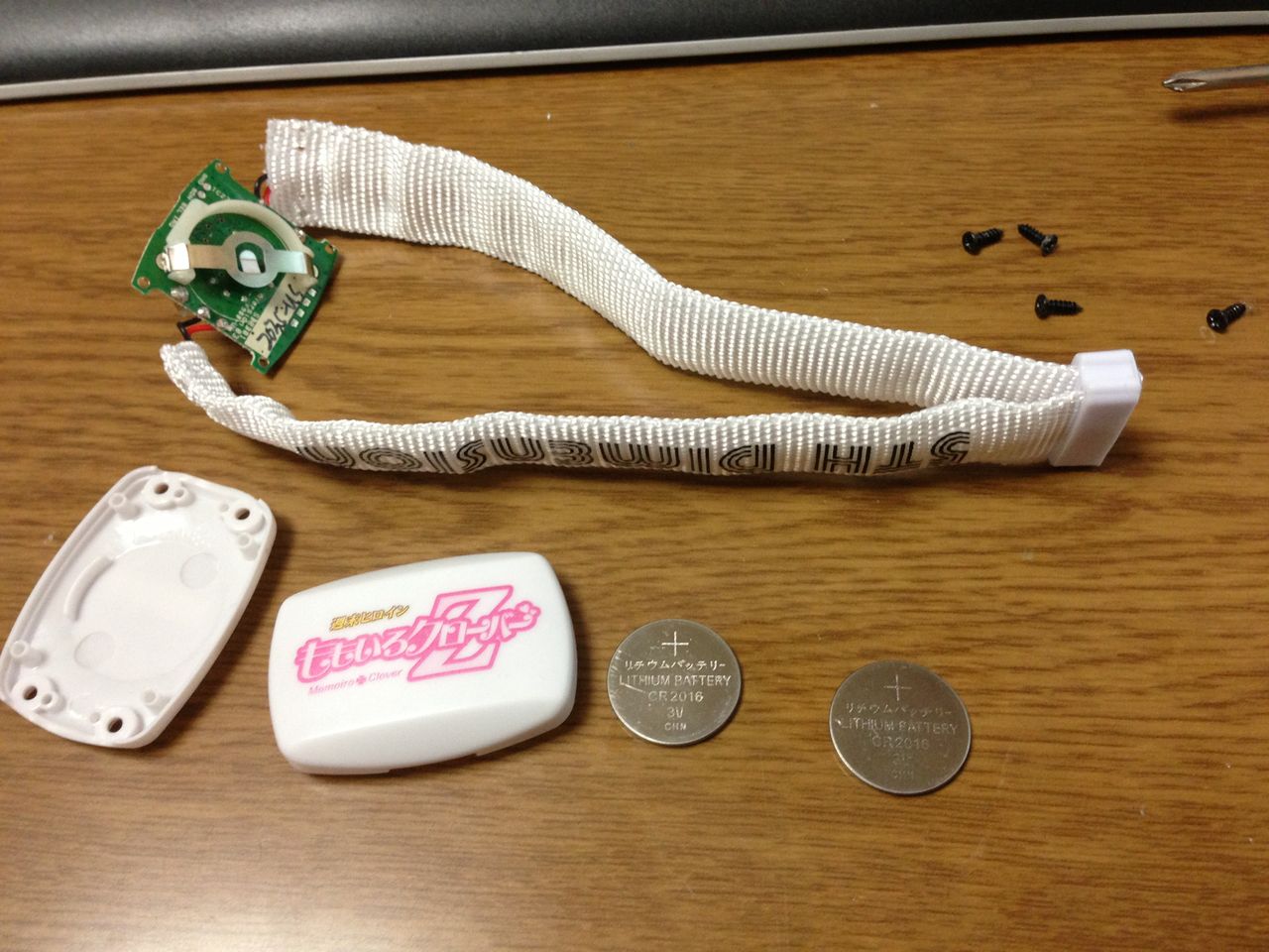 コレにはスイッチの類などユーザが触れるような部分は一切なく、完全に管理されるだけのもののようです。電池部分に絶縁シートを入れる隙間があったので、開場間際に抜いて配ったと思われます(配布は会場内だったので、その段階ですでに「消灯」の制御がかかっていた?)。イベント終了後はずっと点灯しっぱなしで、駅についても光っていたので、イベント後は制御を切ったような感じでしょうか。